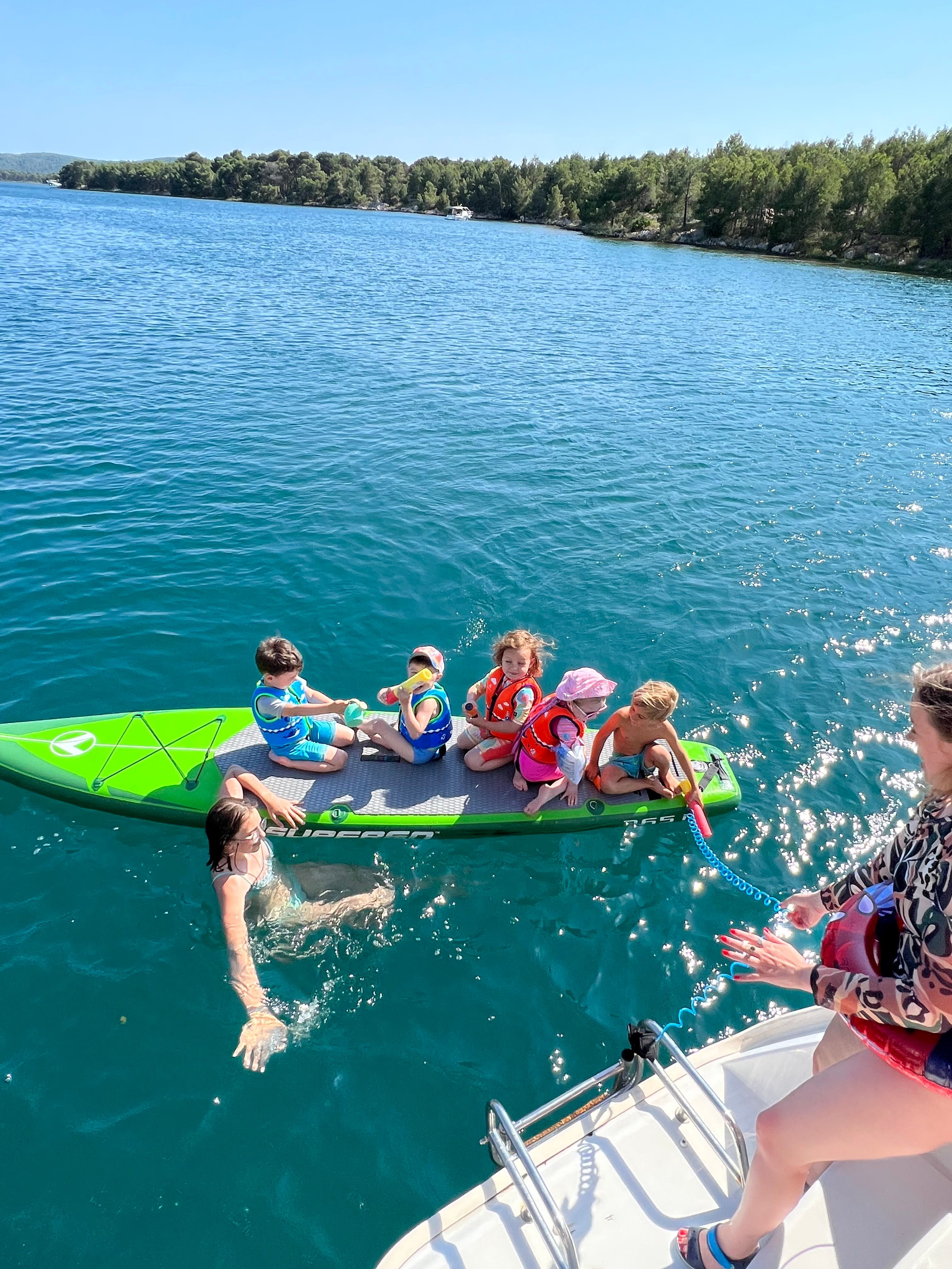 За тиждень ми відвідали⛵ Шибеник, Прімоштен, Роґозніцу і Затон, ночували у диких бухтах🏝, зустрічали разом сходи і заходи сонця🌅, мали піратський день(малювали прапори🏴☠️, і за картою знайденій у пляшці в морі шукали скарби🧭), а також у Національному парку Крка оглянули водоспади, годували рибок🐟і черепашку🐢, зловили морську зірку⭐ і їжаків🦔